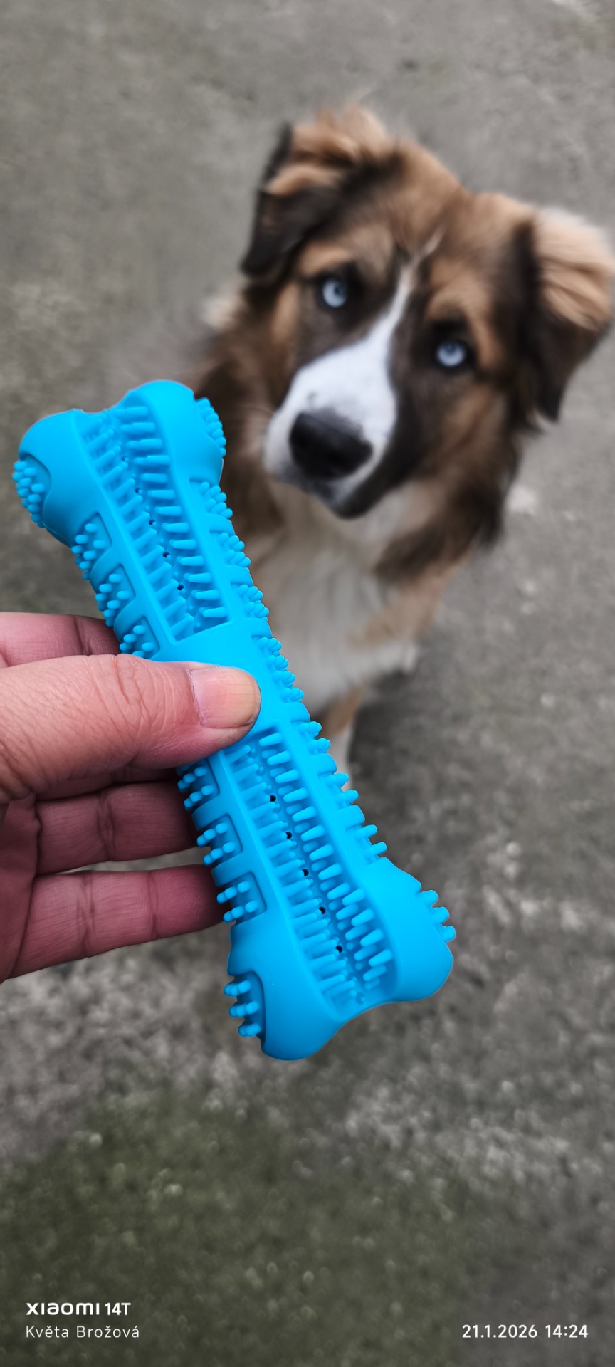 Navíc poskytuje psovi péči v podobě čištění zubů, masírování dásní a jazyka.